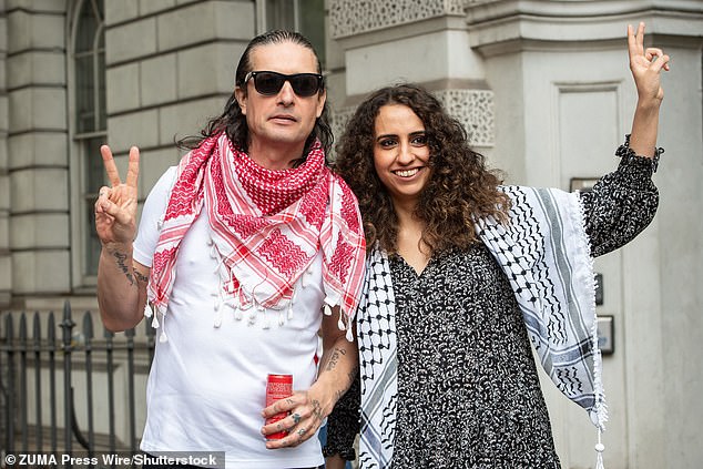Palestine Action co–founders Richard Barnard and Huda Ammori, pictured in 2023 – Ms Ammori has won the latest stage in a court battle to challenge the group’s proscription as a terrorist organisation