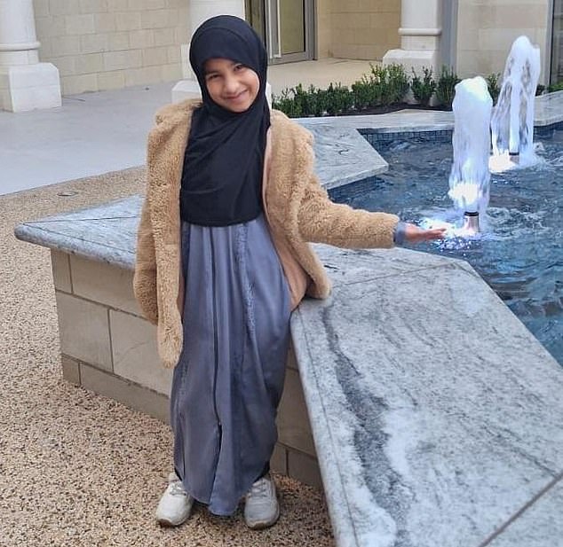 Inaayah Makda (pictured), seven, was sitting on rocks at a beach in the coastal city of Casablanca, Morocco, on Wednesday when she and her family became surrounded by water