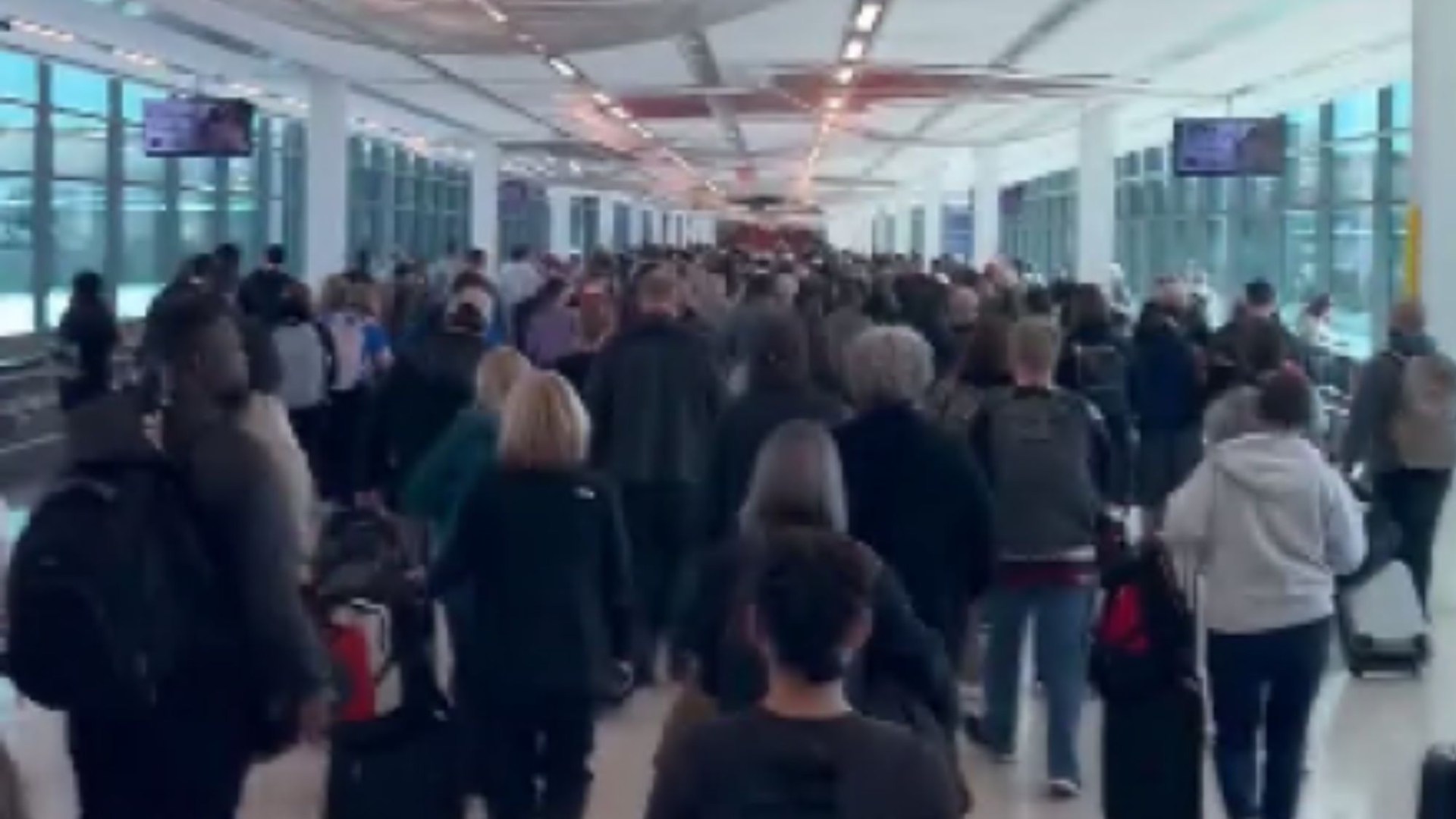 Footage being circulated online shows hordes of travelers exiting the Missouri airport in masses.