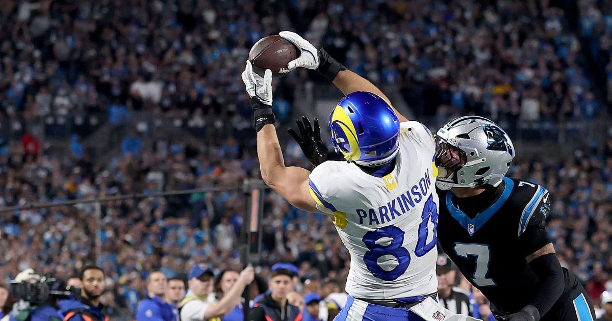 Los Angeles Rams tight end Colby Parkinson, rocking his “Saddle up, we’re following the Lord” cap, didn’t hesitate to praise God after he caught a key touchdown in the Rams’ 34-31 win over the plucky Carolina Panthers.