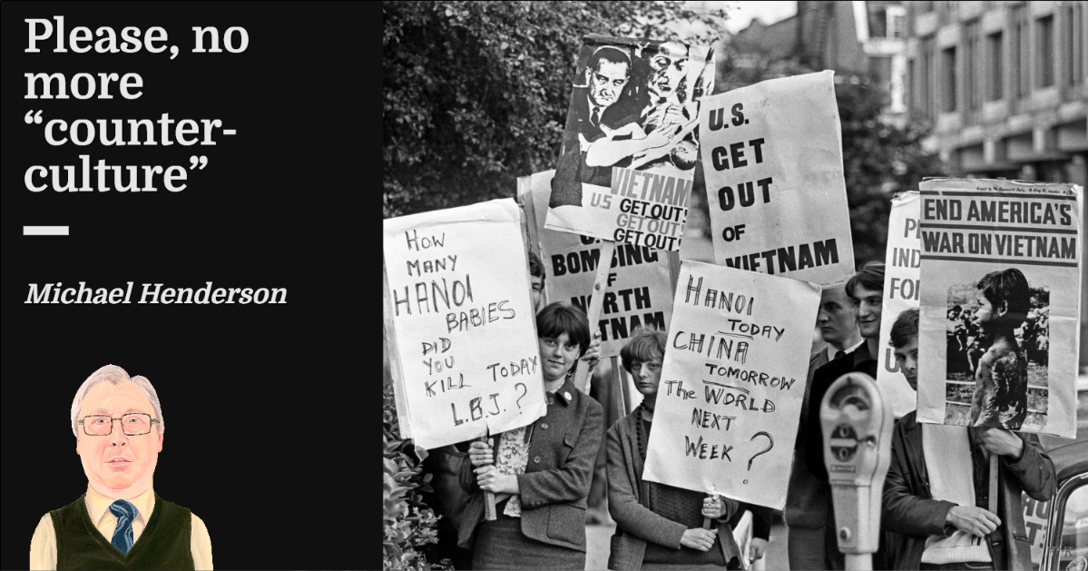 “Counter-culture” became the phrase of choice. “Tuning in” and “dropping out” indicated a noble purpose. What it really amounted to was subsidised loafing, which ended when the flower children were told to settle their accounts. As many a cultural warrior observed when they begat children of their own, a conservative is only a liberal mugged by reality.