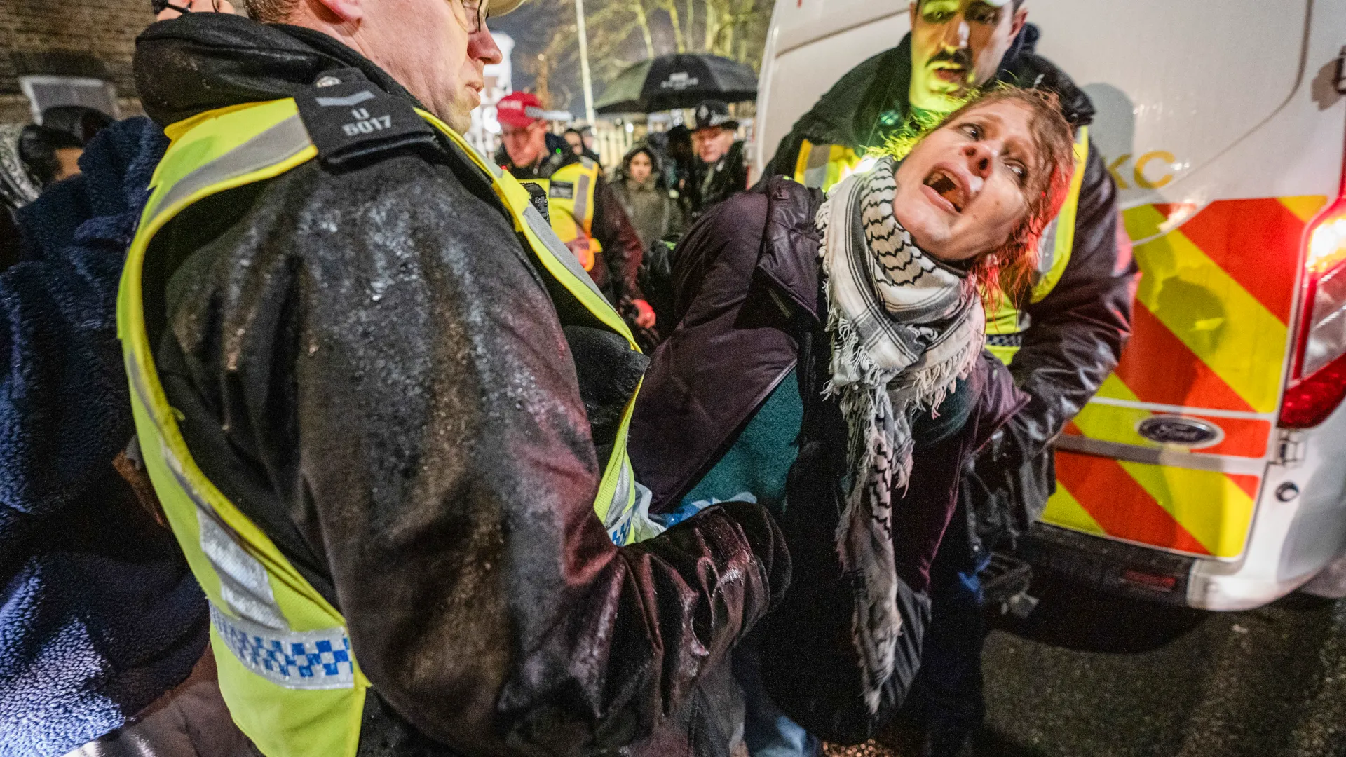 The 86 people, who have been arrested on suspicion of aggravated trespass, have been supporting Palestine Action activist Umer Khalid, who is on hunger strike there.