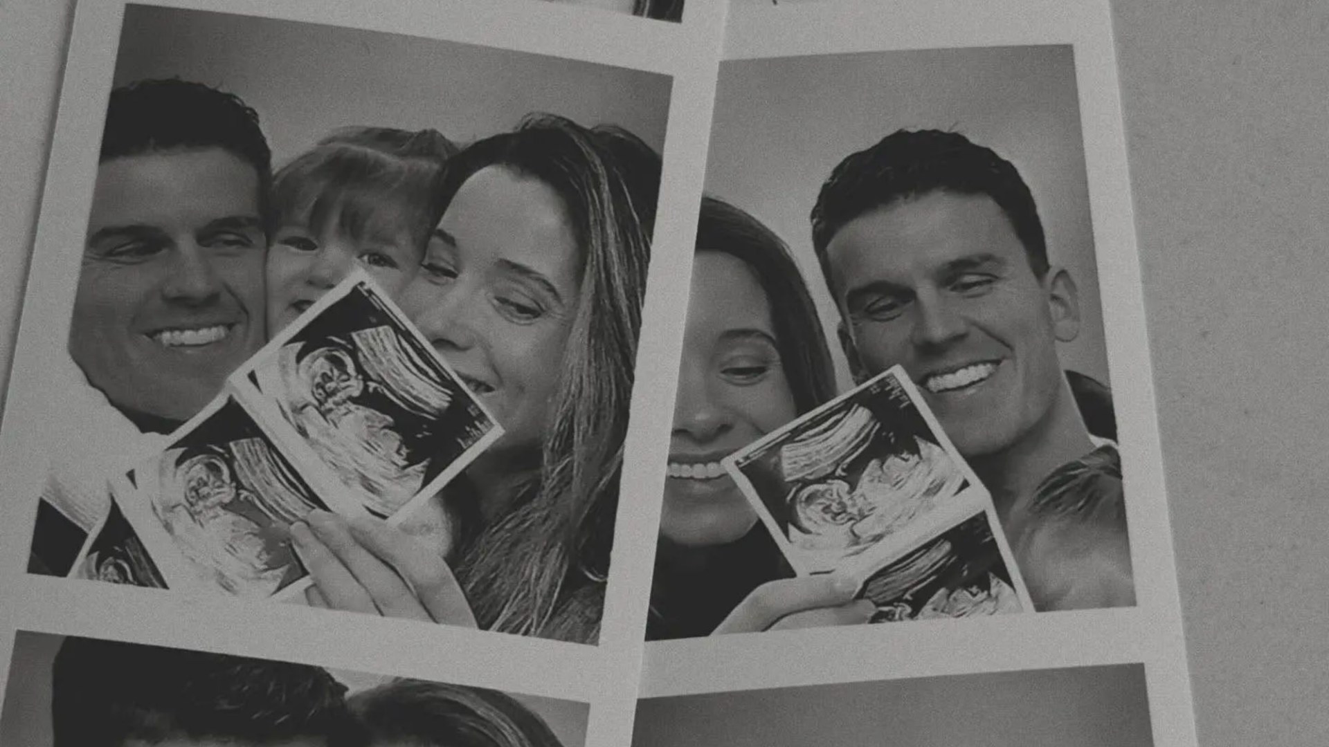 Taking to Instagram, he posted polaroid snaps of himself with his wife Charlotte Byram, their daughter Aria and an ultrasound scan showing off their baby on the way.