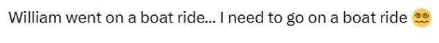‘William went on a boat ride… I need to go on a boat ride,’ one royal fan commented, comparing the two pictures.