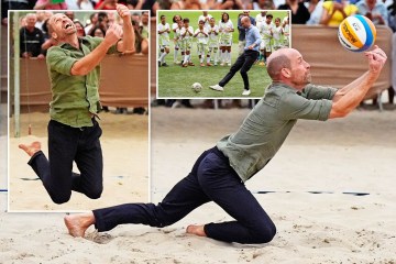 And in a touching moment, William was left holding a baby after a mum pushed her ten-month old son into his arms.