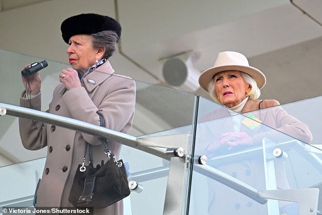 The Princess Royal and Mary Berry were spotted cheering on the horses as the Cheltenham Races came to a dramatic close