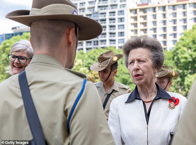 Princess Anne, pictured, attended a Remembrance service at the ANZAC Memorial in Sydney on Sunday