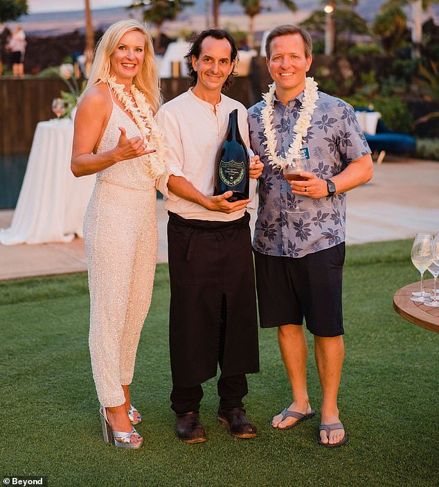 Top lawyer Tara Arnold, 46, (left) was on a location scouting trip with private chef Nick Mastrascusa, 43, (center) for luxury travel company Beyond, which she started as a side venture with her husband Kurt Arnold (right)