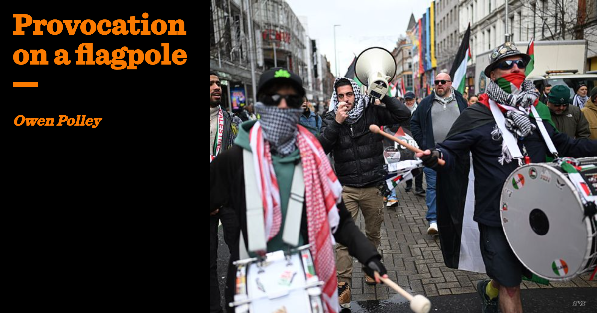 And make no mistake, the flying of the flag, at the behest of Sinn Fein, was a deliberately provocative act. It was intended to show that nationalists are now firmly in charge of Belfast and will not be constrained by the qualms of unionists or Jews.