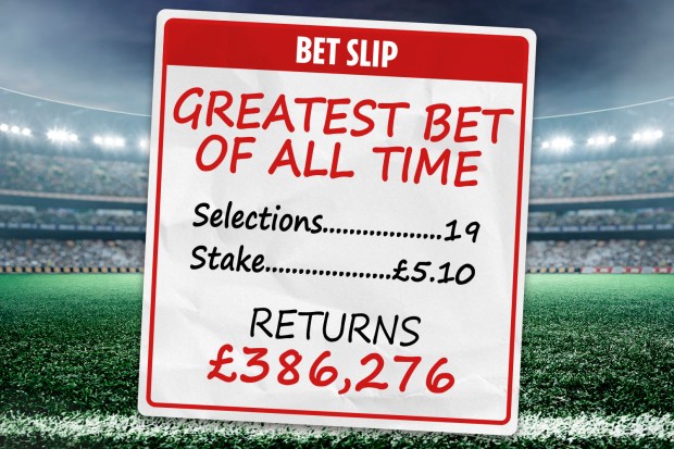 That’s the view of the bookmaker too as the bettor’s combinations of a 19-fold accumulator and £5.10 stake returned just shy of £400,000!