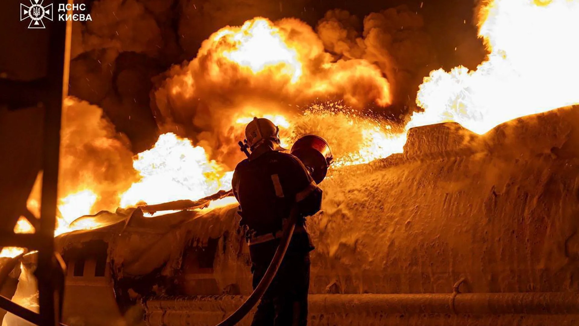 More than 1.2 million buildings were left without power nationwide following the strikes as temperatures plummeted to -13C in the capital.