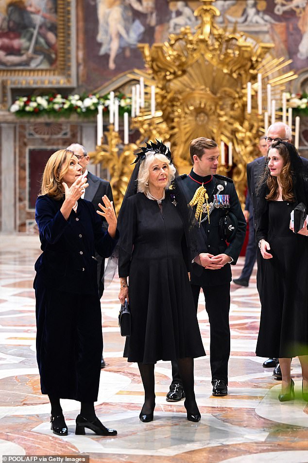 Major Ollie Plunket, pictured standing behind Queen Camilla, has served as Her Majesty’s first-ever equerry since 2022