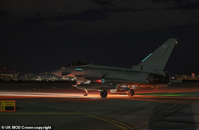 A Royal Air Force Typhoon aircraft seen here at take-off ahead of the strike on Saturday
