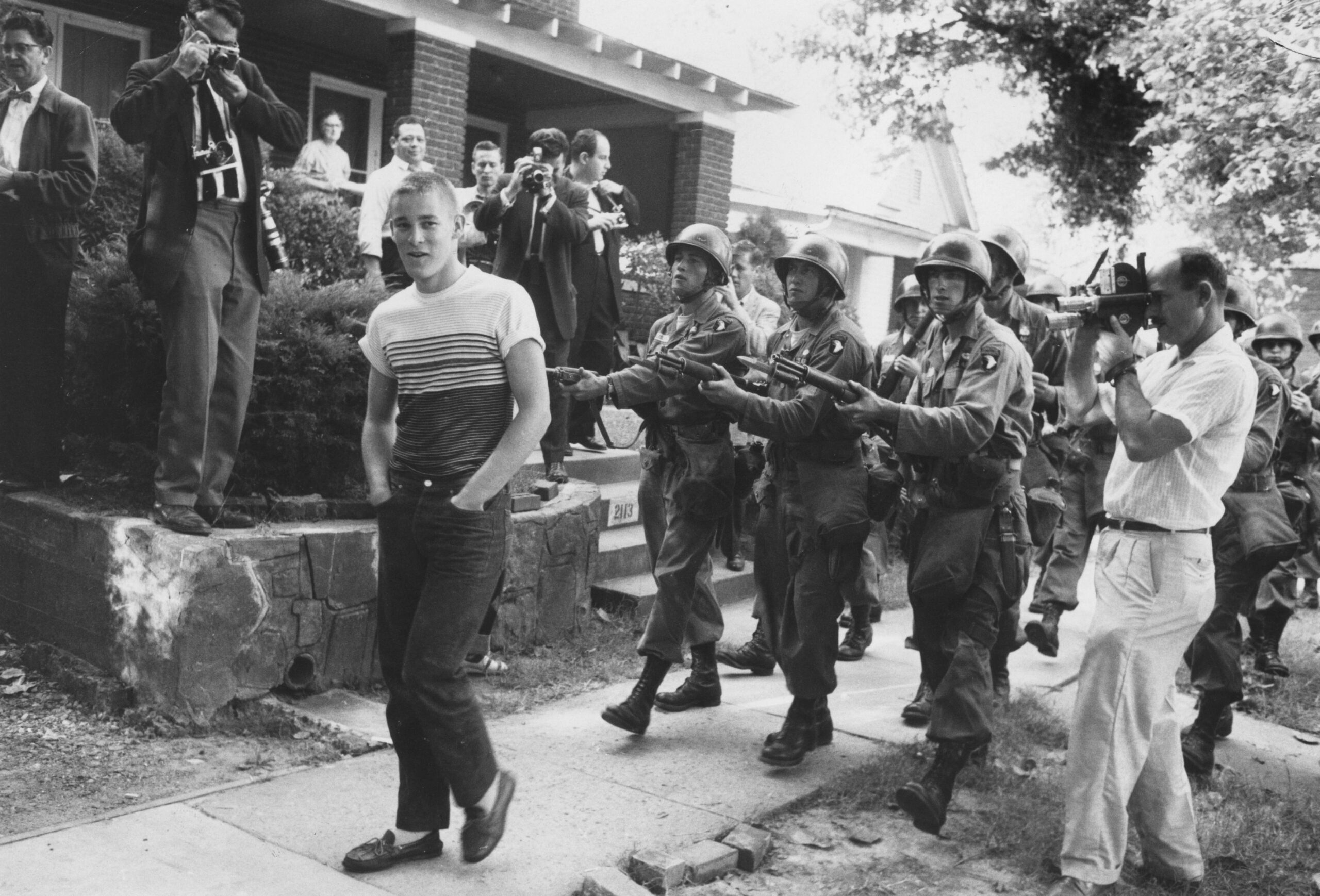 They did not, so the very next day, Eisenhower sent 1,000 soldiers with the 101st Airborne to Little Rock to walk nine black children to school. They stayed there for the entire 1957–1958 school year, ensuring continued compliance with federal law. Five years later, JFK did the same thing, federalizing the National Guard, whereupon they escorted two black students into the University of Alabama and 20 black students into Birmingham public schools.