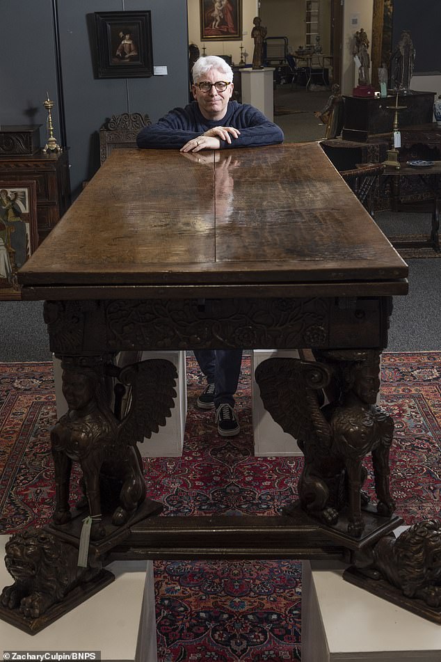 Paul Fitzsimmons pictured with the Elizabethan era table which sold for £126,000