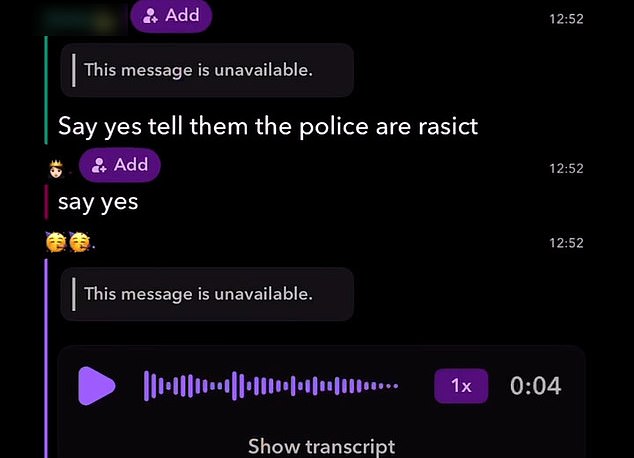Concocting plans for how to escape police action, one says: ‘Tell them the police are racist.’