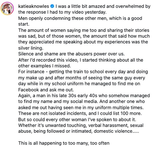 Katie then shared another video the following day thanking her followers for their sympathetic responses to her intimate revelations.