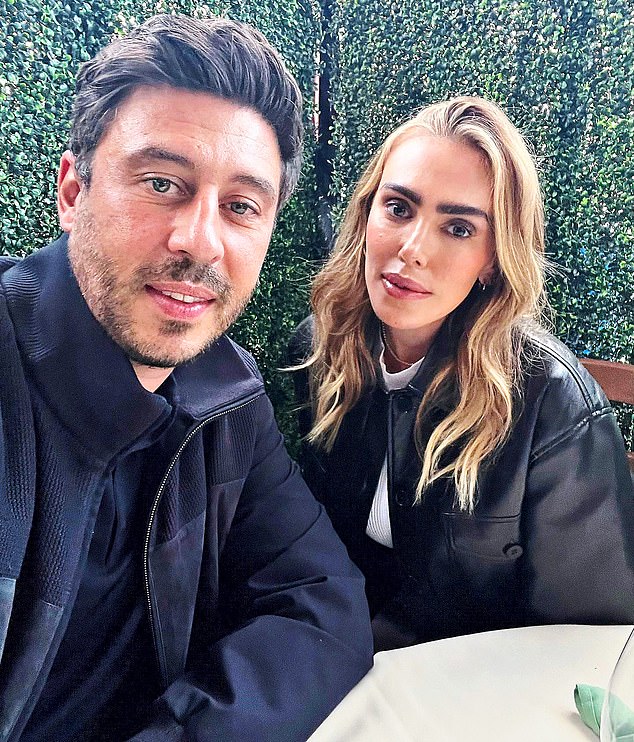 Wearing a pinstriped custom gown – undone to her hips – and hat designed by Robert Wun, she adds: ‘I’d absolutely be open to meeting a nice, funny Englishman with a good sense of humour — but when you’ve been out of the game for a while, it’s easier said than done.’