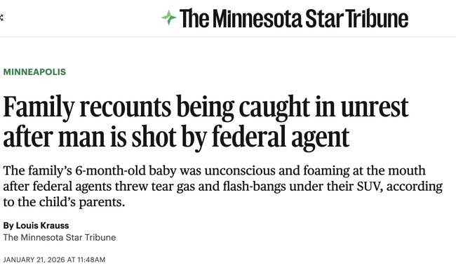 The story is perfect. Mean old ICE people risking the lives of infants out of a hostility to random brown and black people. Babies foaming at the mouth, violence, and chaos from cruel agents sent by Bad Orange Man to terrorize the peaceful citizens of Minneapolis.