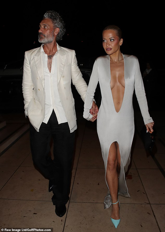 Rita arrived hand-in-hand with her director husband Taika, 50, who looked effortlessly stylish in a black tuxedo jacket and black trousers.