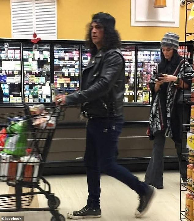 He may have been picking up essentials, but the star – whose work in the classic song Sweet Child o’ Mine was named the great guitar riff ever by a 2022 poll – was still as cool as ever in a black leather motorcycle jacket and jeans.