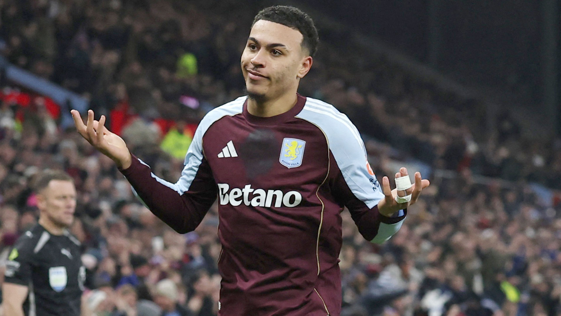 Morgan Rogers celebrating his second goal for Aston Villa.