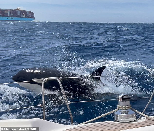 The ‘Gladiator’ pod attacking boats in the Strait of Gibraltar is speaking its own unique language, scientists have found. Pictured, an orca encroaches upon a sailing boat during an hour–long attack off the coast of Morocco, 2023
