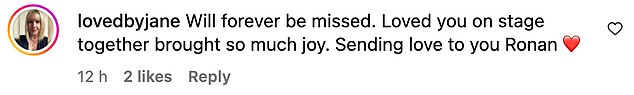 ‘Will forever be missed. Loved you on stage together brought so much joy. Sending love to you Ronan ❤️’