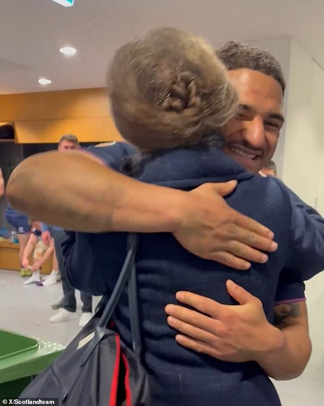 Captioned ‘Sione finally gets his hug’, the clip saw the pair briefly embrace before exchanging a few words and seemingly laughter to conclude a rather successful tournament for Scotland.