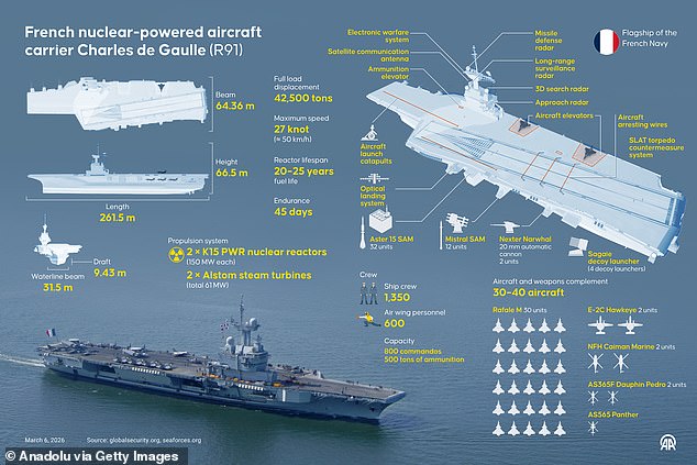 France‘s flagship carrier, the Charles de Gaulle, had been deployed to the region by President Emmanuel Macron in the days following US-Israeli strikes in late February, as tensions with Iran escalated.