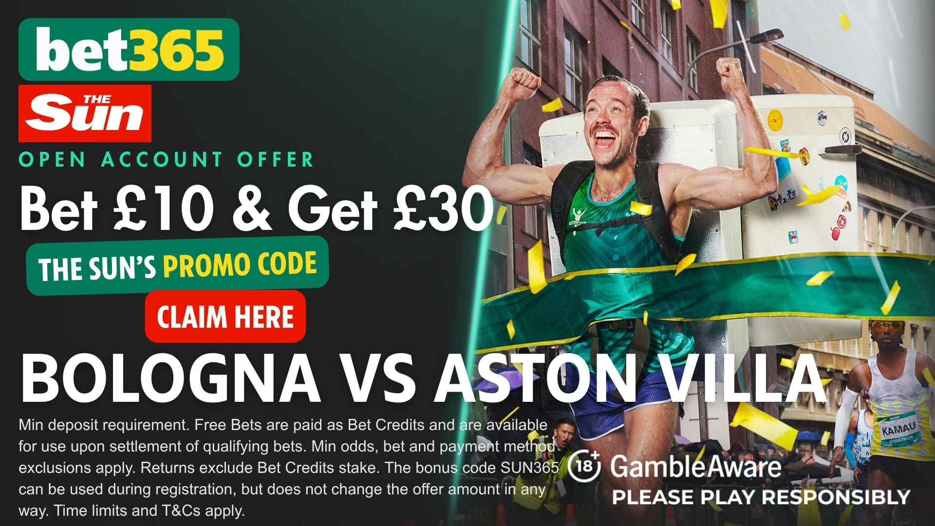 You can back the Rossoblù to secure a crucial first-leg advantage, or the Villans to conquer Italy, with a 300% welcome bonus using the bet365 promo code SUN365.