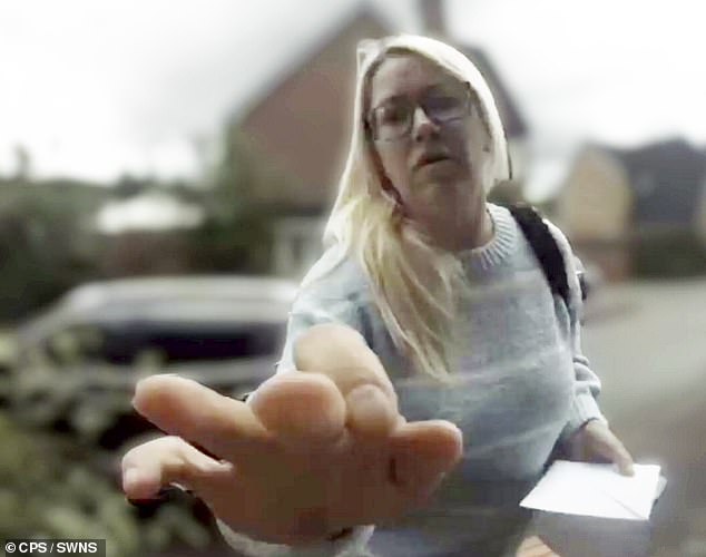 Monika Konopska, 43, knocked on the door of the victim’s property and threatened to do ‘serious damage to his life’ – claiming she had spoken to his neighbours.