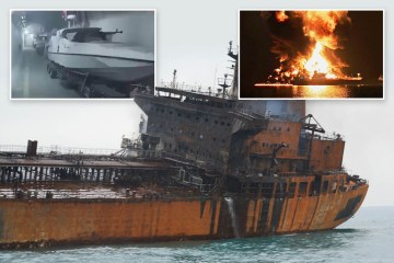 SHOCKING pictures show Putin’s charred “shadow fleet” tanker drifting with no crew after it was blitzed by Ukrainian drones.