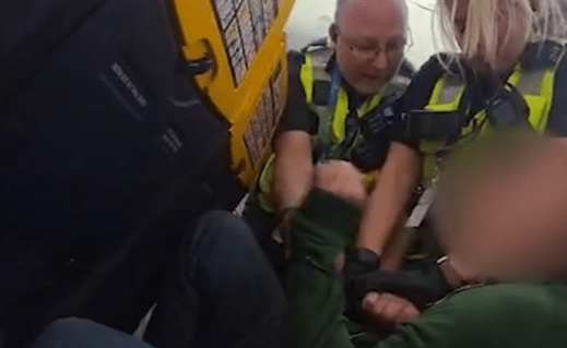 THIS is the shocking moment a Ryanair flight descends into chaos as a “drunk” passenger gets into a scrap with police.
