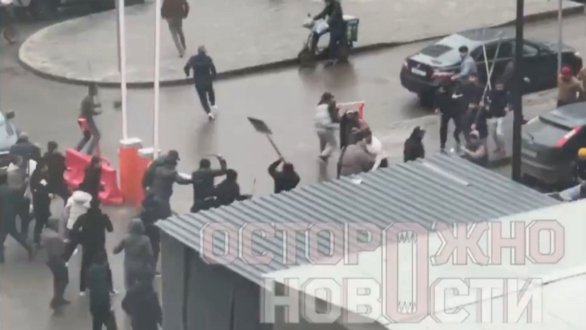 THIS is the shocking moment a mob reportedly made up of migrants run rampant through Moscow armed with shovels and iron bars.