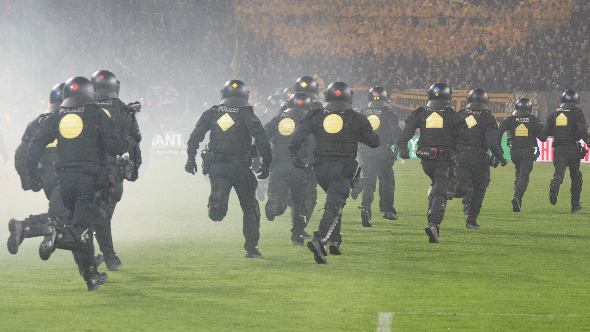 That was after flares were set off by both sets of fans in Dresden that evening.