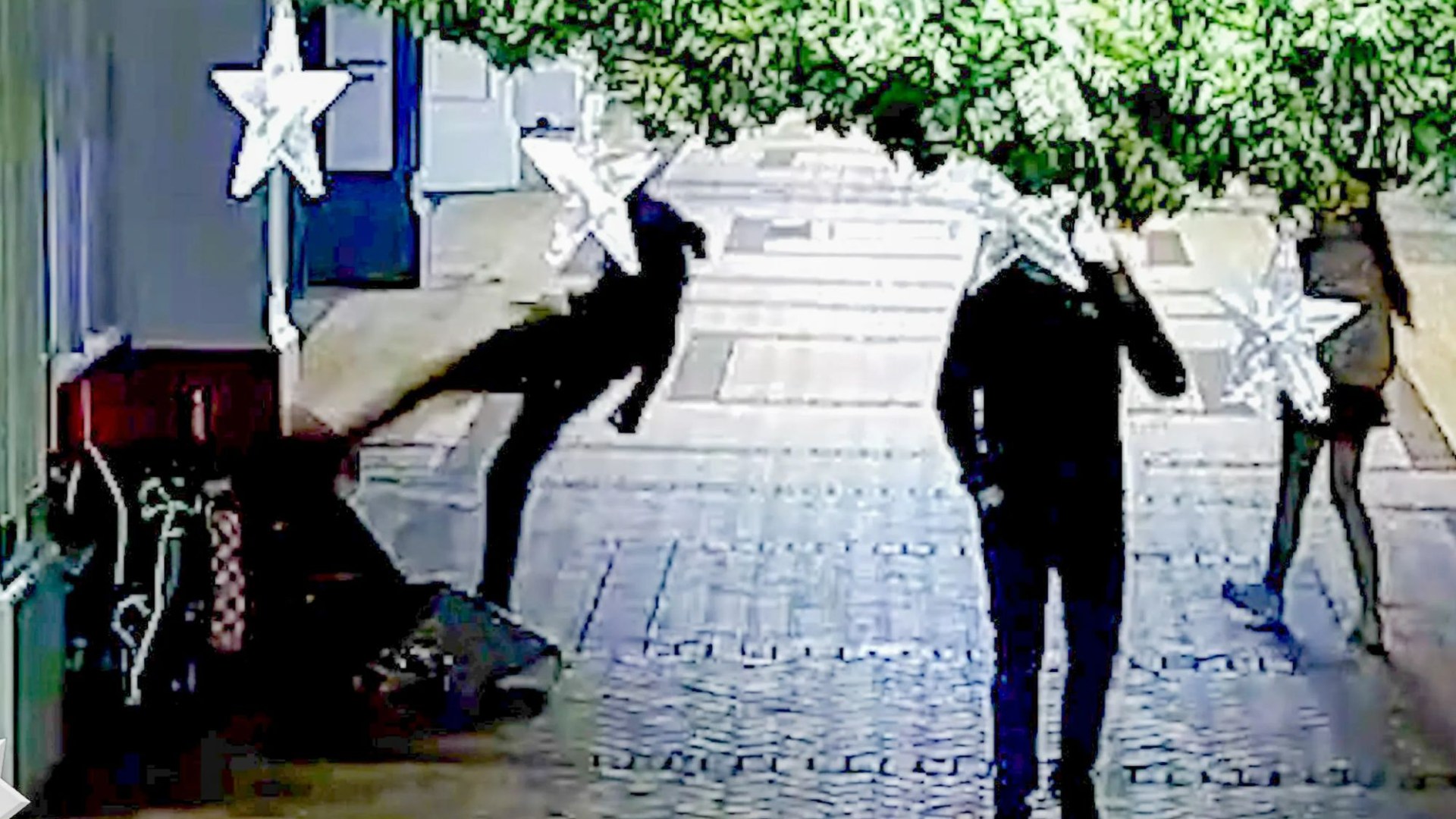 THIS is the shocking moment a thug kicked a homeless woman in the head in a sickening unprovoked attack.