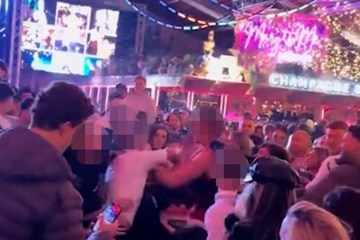 In the other footage, published by The Sun on Tuesday (December 23), two men are initially shown throwing punches at one another in the popular Bavarian Village.