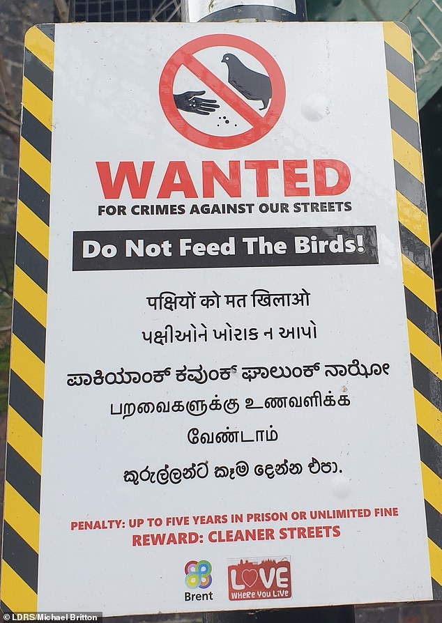 The threatening notices from Brent Council, which were written in English and five South Asian languages, describe feeding birds as a ‘crime against our streets’.