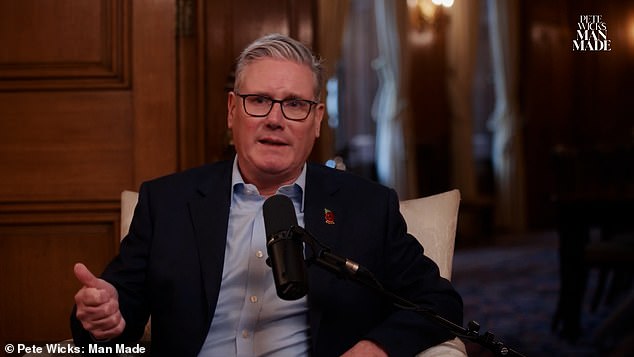 An emotional Sir Keir opened up about his grief, which he said ‘hit him like a bus’, on Pete Wicks’ Man Made podcast, which focuses on modern masculinity and men’s mental health.