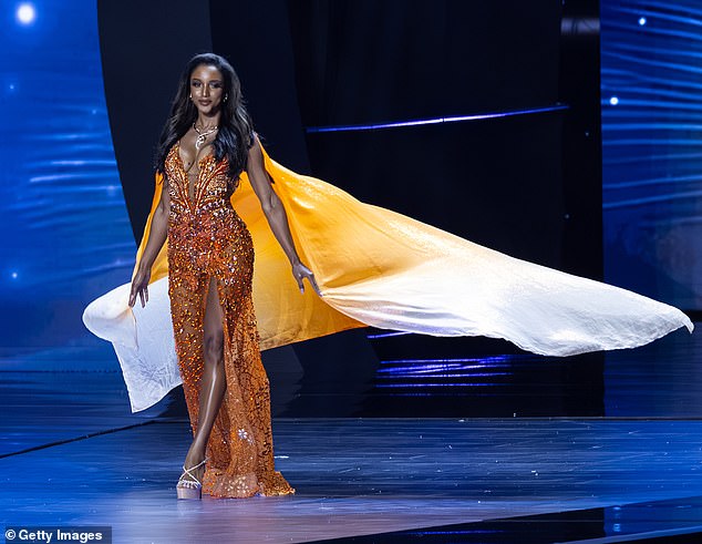 Fans online wasted no time linking the win to the week’s drama, with one writing on social media: ‘Next year, whoever walks out will win,’ and another declaring: ‘They had to crown her to make up for injustice earlier to save Miss Universe!’