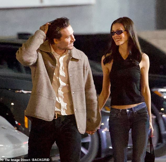 The eldest son of David and Victoria, 26, looked very happy with himself as he held hands with the actress, 31, at Japanese restaurant Matsuhisa