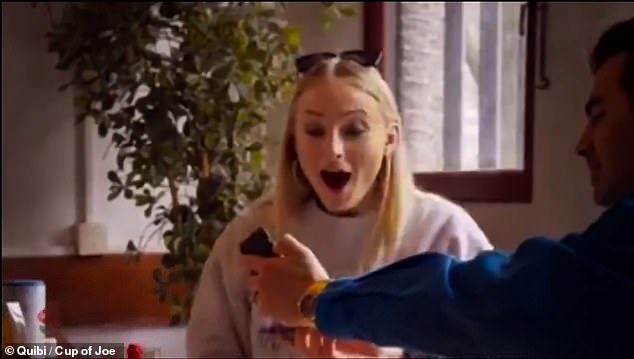 Joe passed the actress his phone explaining, ‘I have someone who wants to say happy birthday’. Holding her hands to her face, Sophie squealed: ‘It’s Chris Martin!’