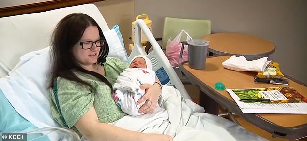 Amethyst Blumberg gave birth to a baby boy named Onyx King Easterlie just before 9am while finishing up her shift at a FedEx facility in Grimes, Iowa