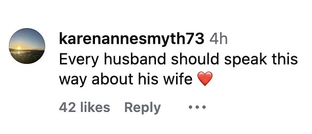 Fans too were full of praise to the star and said: ‘Spencer is a lovely guy who really appreciates how good Vogue is and how hard she works, great couple’: ‘Every husband should speak this way about his wife’: ‘The way you speak about your beautiful wife is just amazing’: ‘Find a man that talks about you like this behind closed doors’.