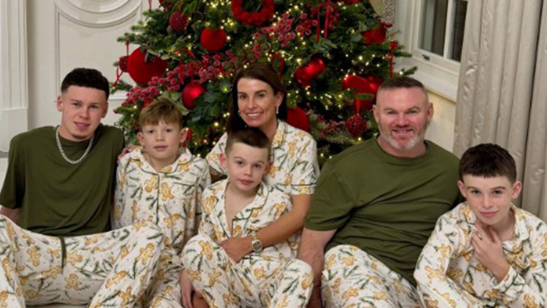 Manchester United icon Rooney was pictured with wife Coleen and their four boys, Kai, Klay, Kit Joseph and Cass Mac sitting in front of their Christmas tree.