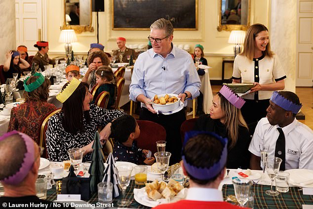 After a chaotic year and with the threat of a Labour coup rising, the PM used his festive address to insist his ‘priority’ is making life easier in Britain (pictured hosting a reception for front line public service workers in No10 this week)