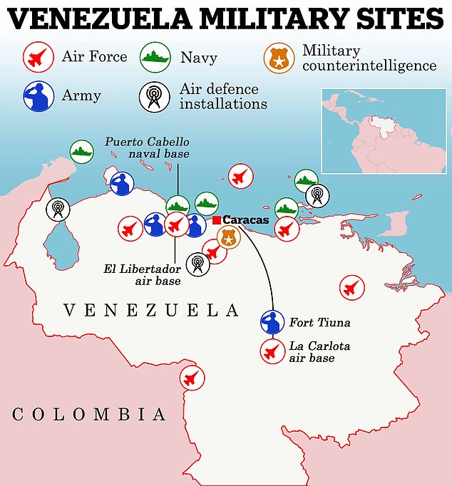 He has also warned Maduro it would be ‘smart’ to step down, but has not gone as far as to confirm that the US military operations are to force regime change.