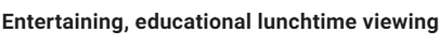 ‘Entertaining, educational lunchtime viewing.’
