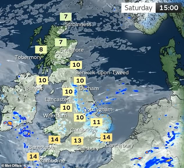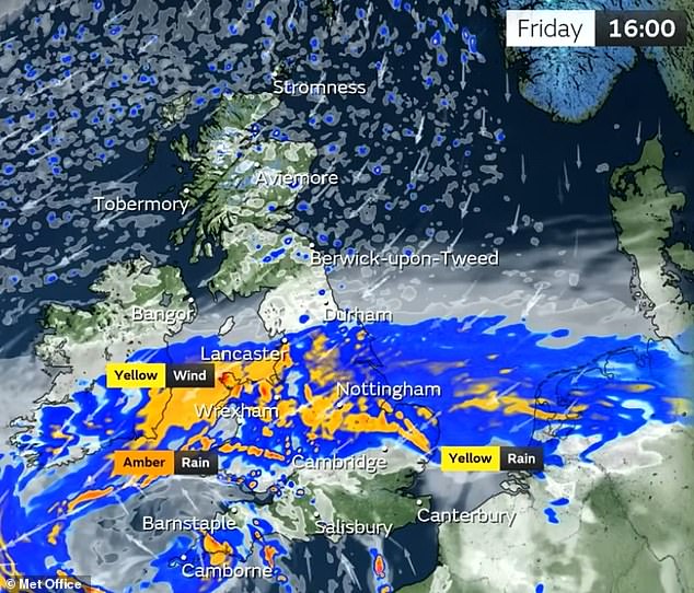 He added: ‘Much of this will fall on saturated ground, increasing the chances of flooding and contributing to the amber warnings we have issued.